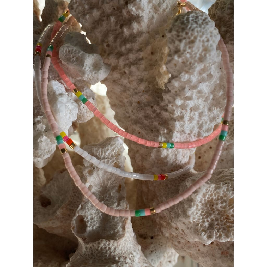 Bracelet de cheville monté sur cordon polyester, composé de rocailles Miyuki délicat,