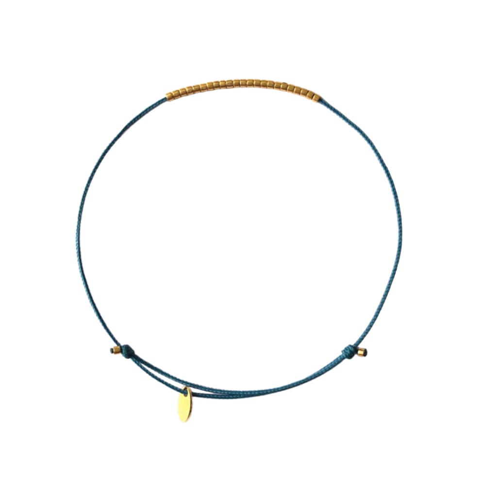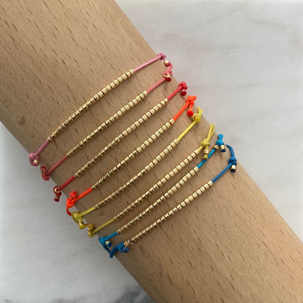 Bracelet monté sur 1 fil en polyester et barrette en rocailles miyuki délica dorées. Vous trouverez en ce bracelet une mini manchette qui habillera joliment votre poignet.