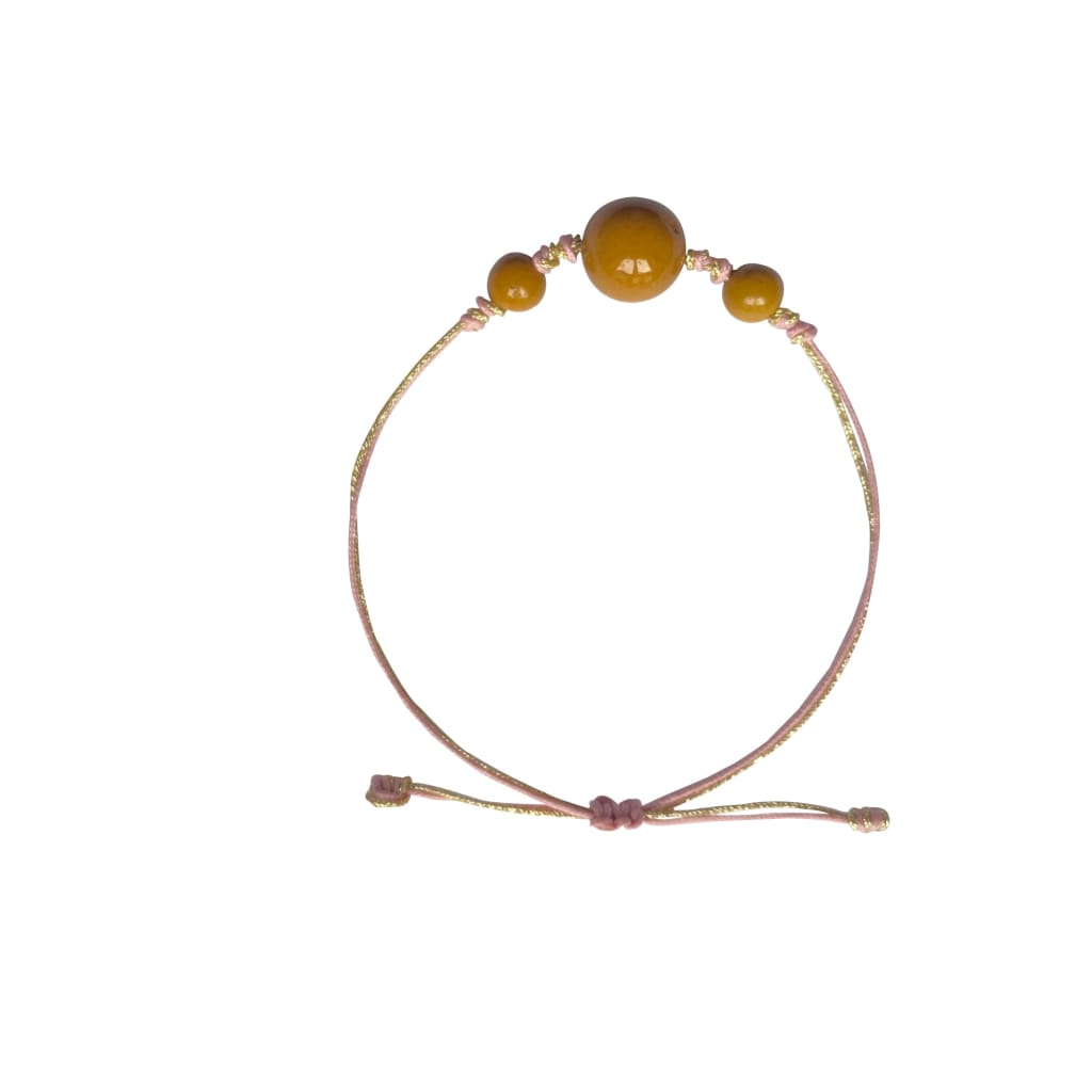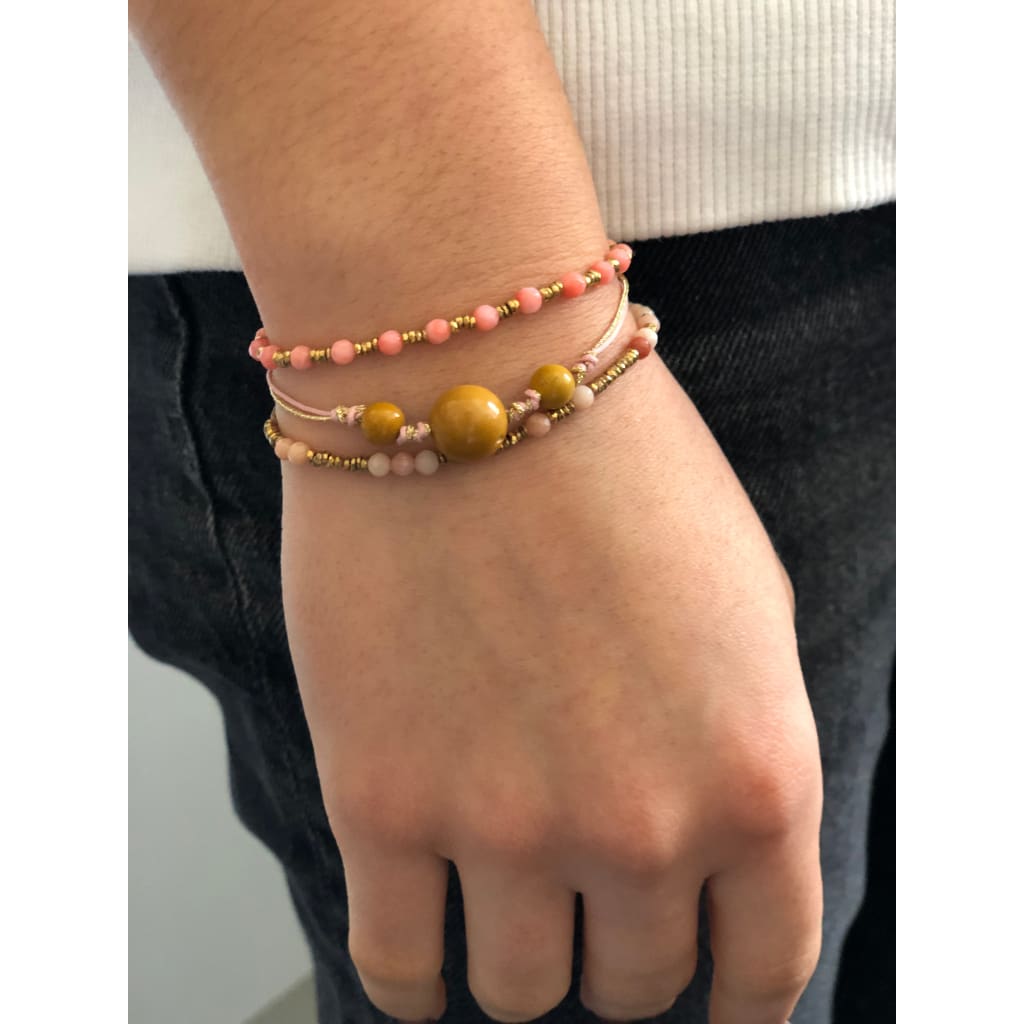 Bracelet monté sur un fil doublé polyester lurex, composé de perles en mokaïte jaune d'Afrique. La simplicité et l'élégance de ce bracelet sera le cadeau parfait à porter avec d'autres bijoux.