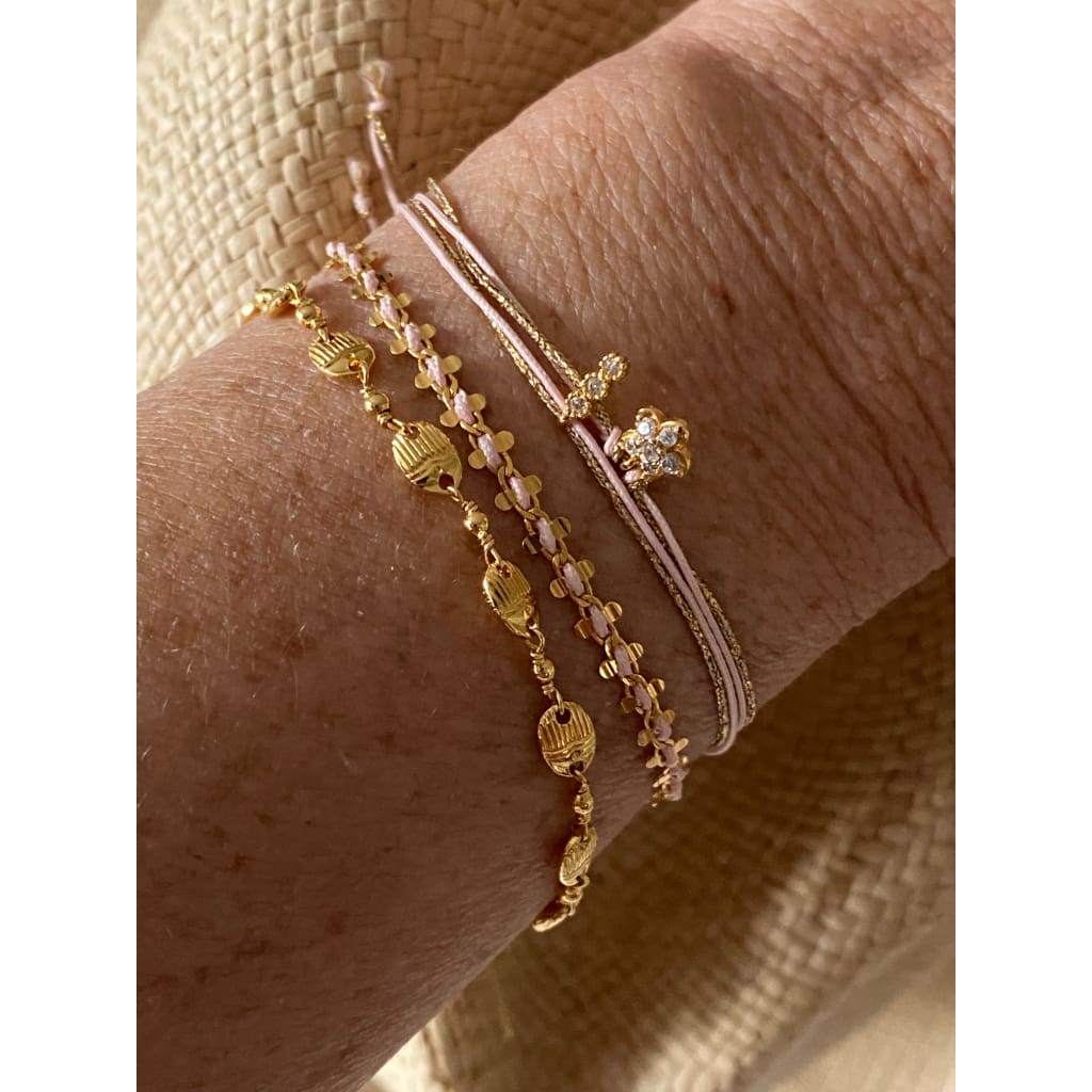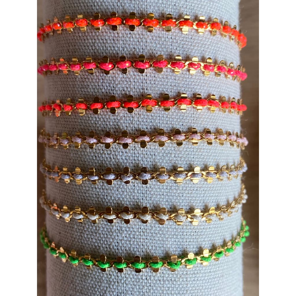 Bracelet sur chaîne plaqué or et son fil de couleur. Vous trouverez en ces bracelets un large choix de couleurs, qui mettra du pep's et de la vitamine à vos tenues d'été.