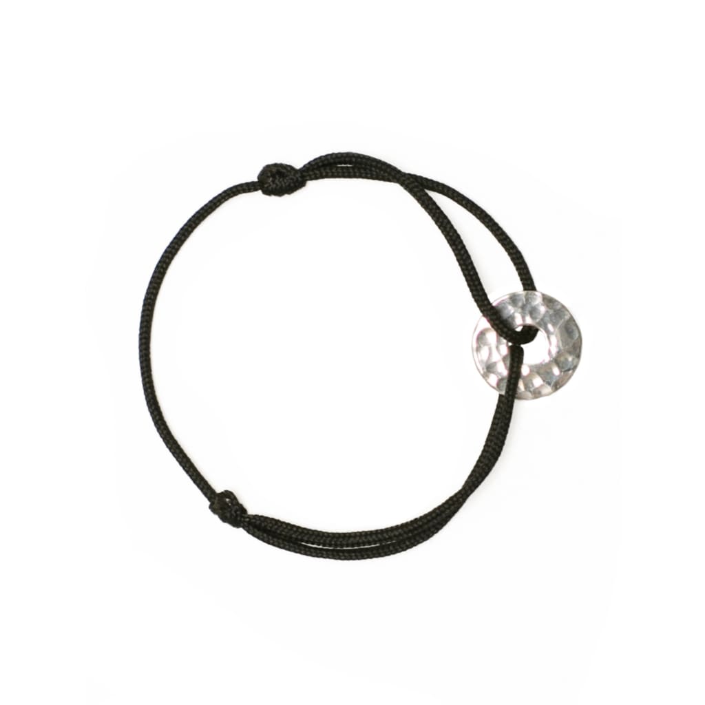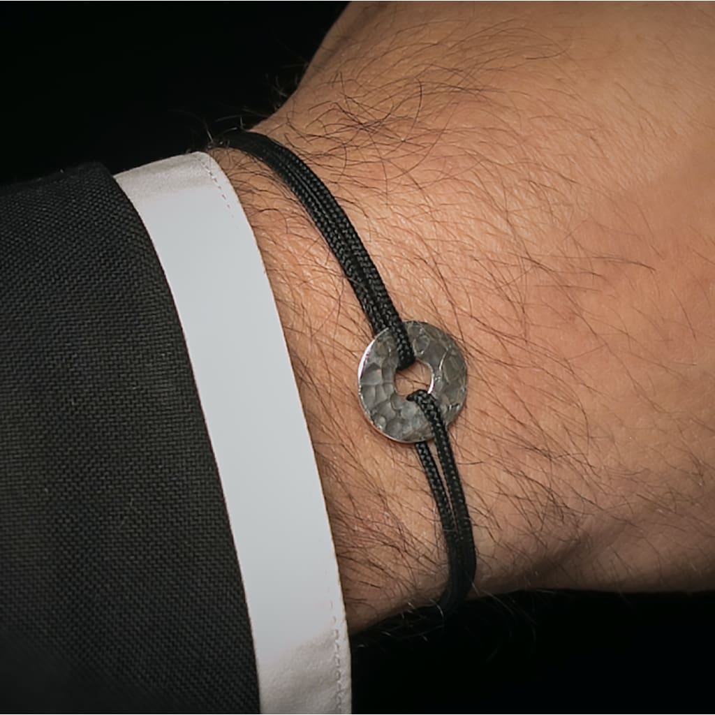 Bracelet sur fil polyester noir, cible en argent massif 925.