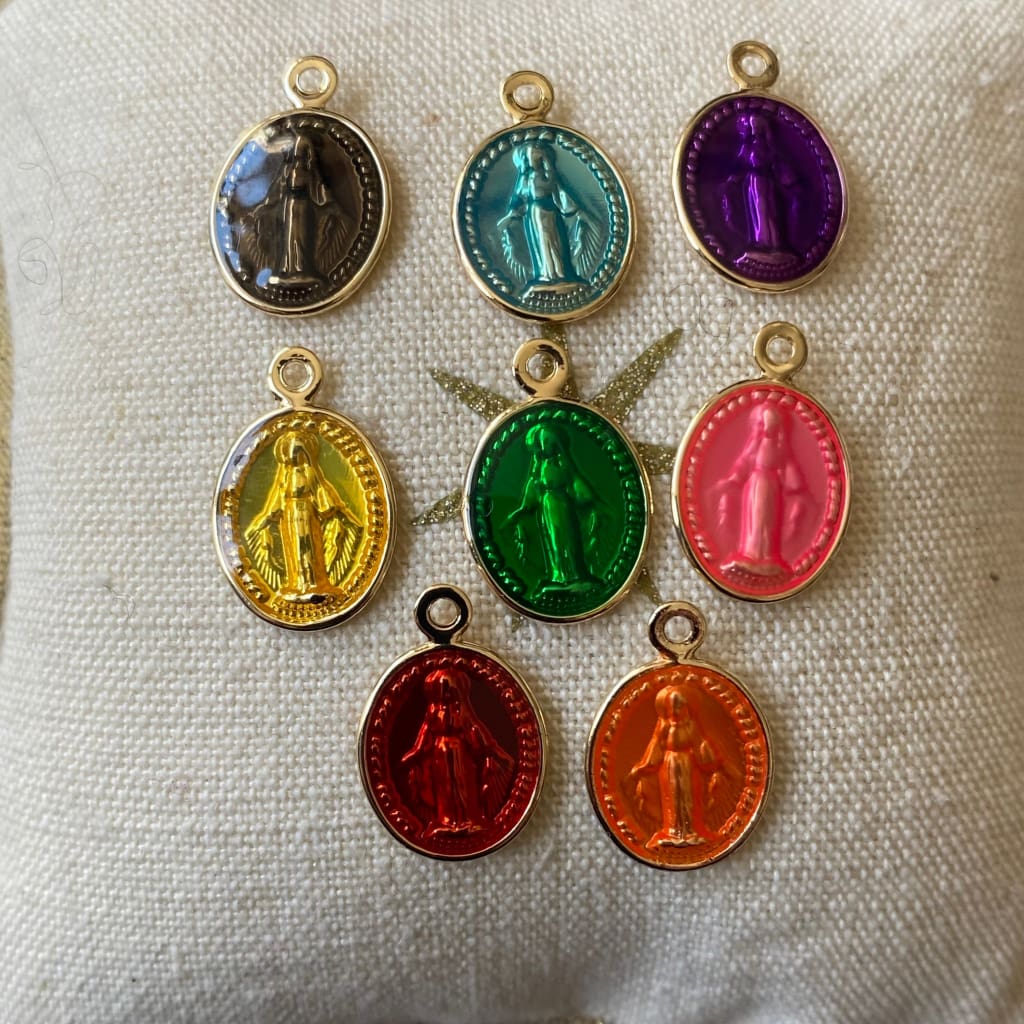 Collier réglable en hématite et 8 médailles en acier inoxydable et résine de couleur.
