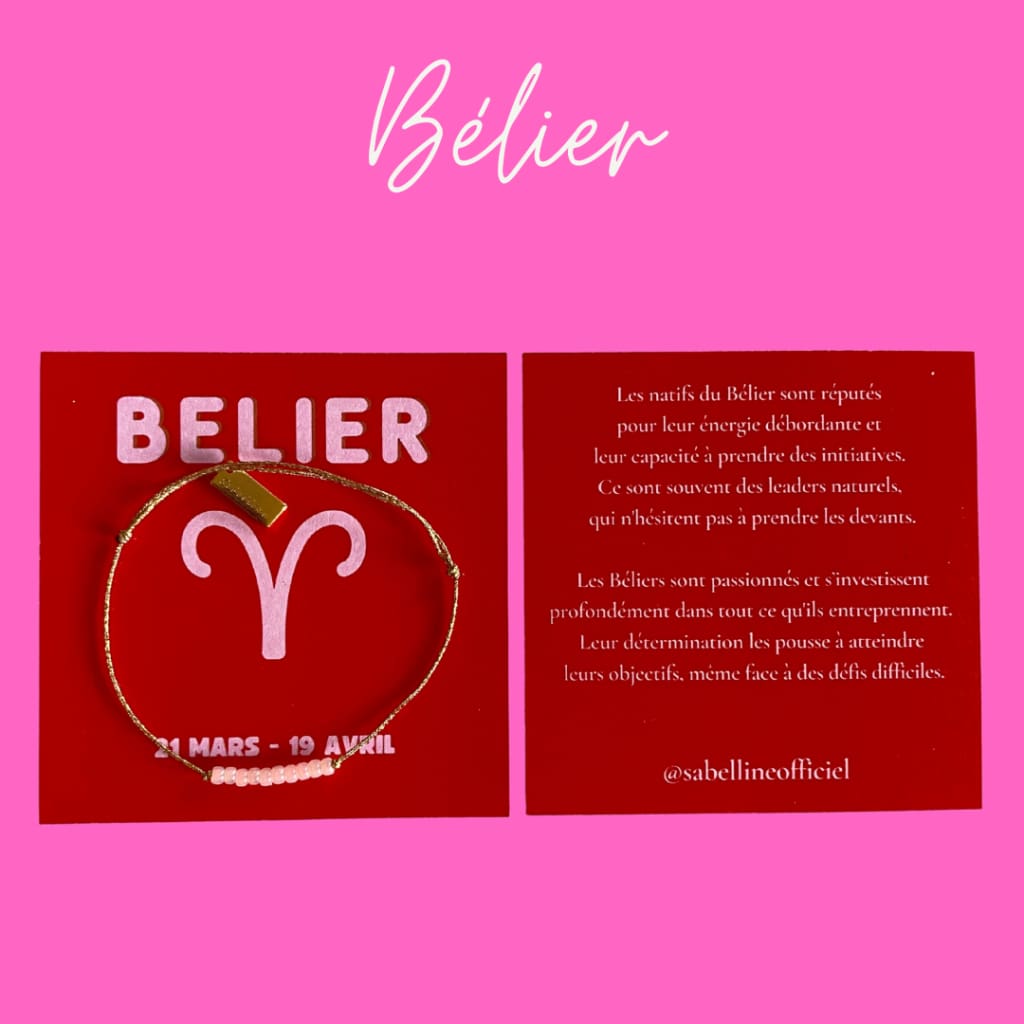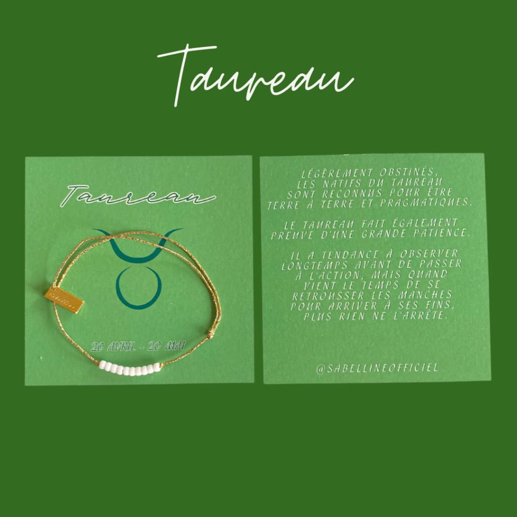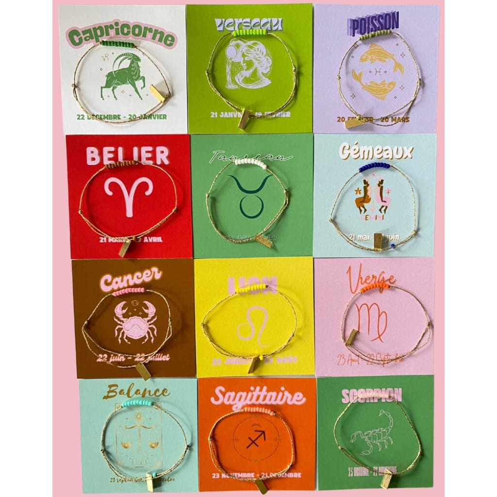 Retrouvez votre signe astrologique avec sa signification, accompagné d'un joli bracelet sur fil doré.