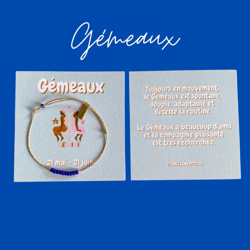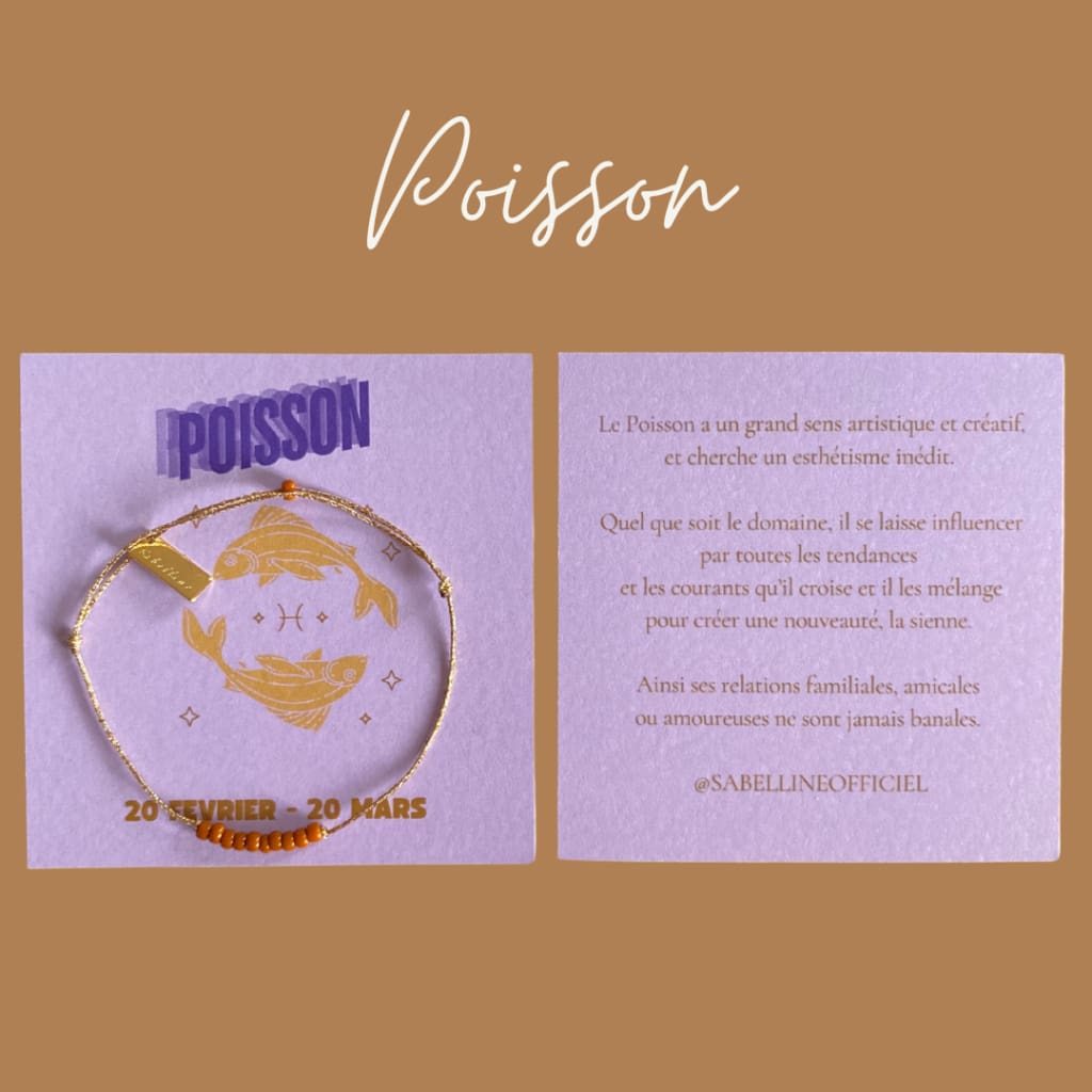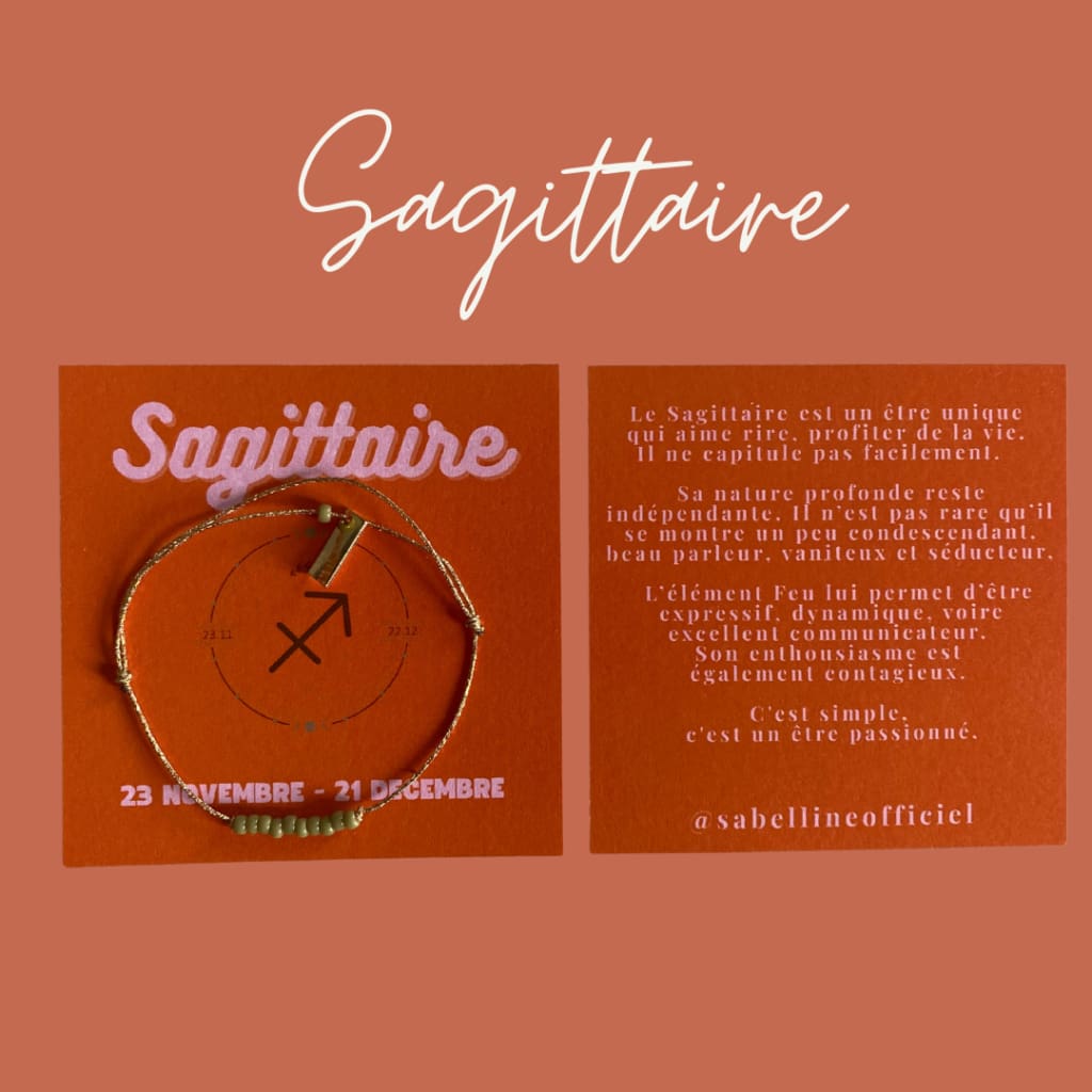 Retrouvez votre signe astrologique avec sa signification, accompagné d'un joli bracelet sur fil doré.