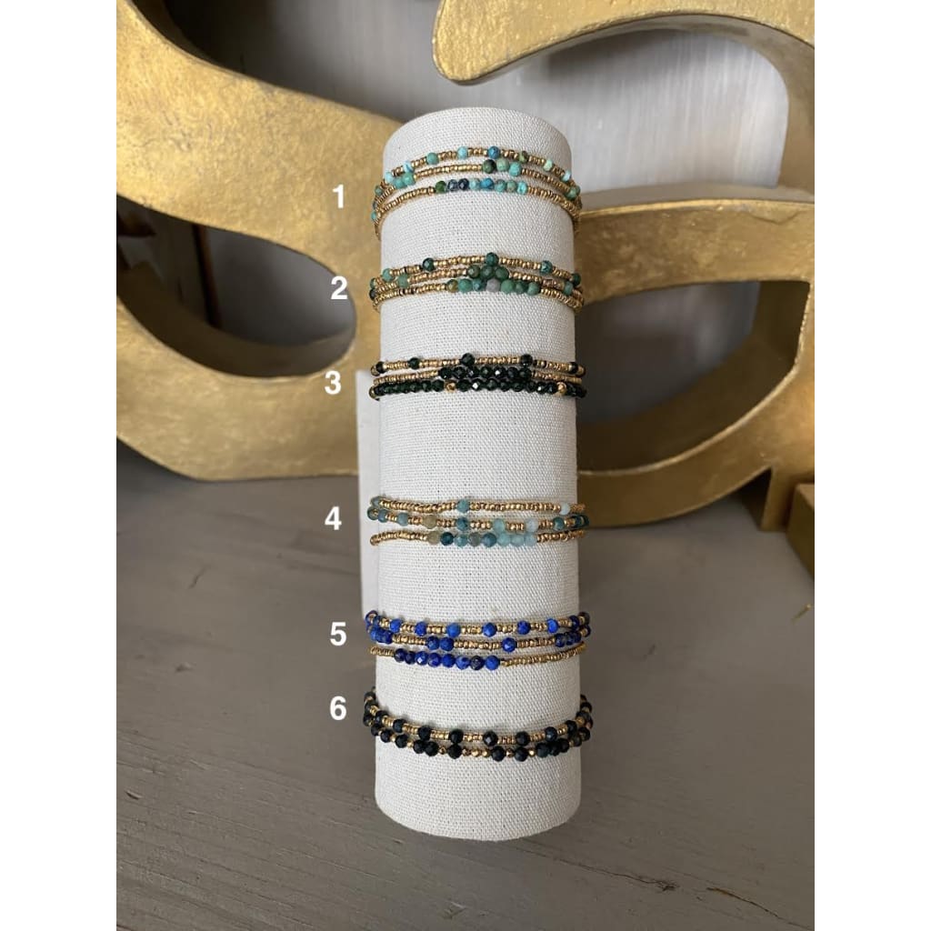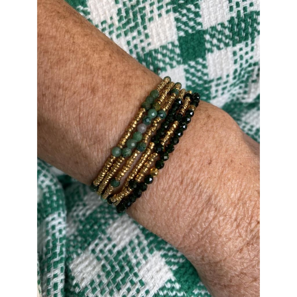 Lot de 3 bracelets sur cordon polyester, composé d'hématites dorées et de perles fines. Vous trouverez en ce bracelet un éclat étincelant avec un large choix de couleurs, qui fera votre bonheur ou la joie de pouvoir l’offrir.