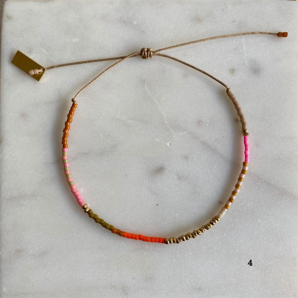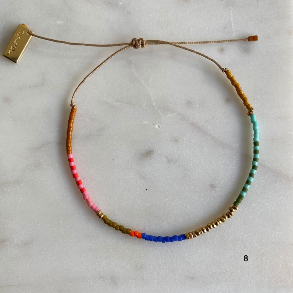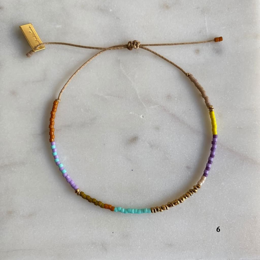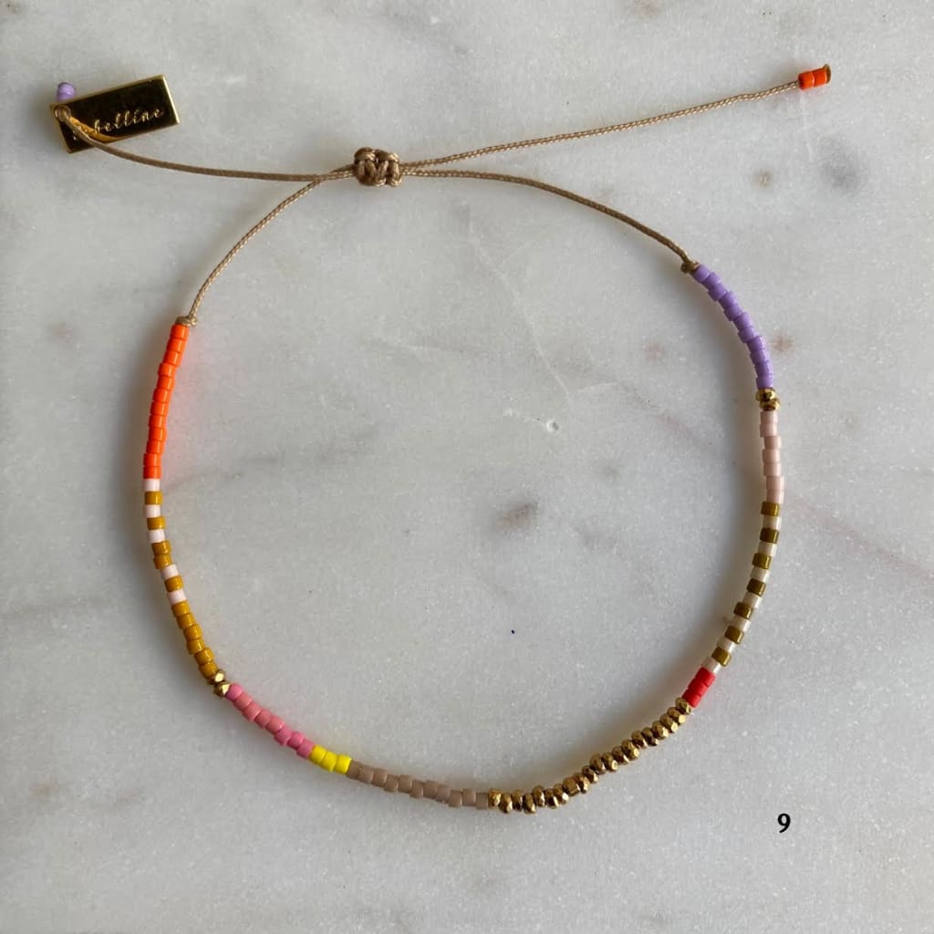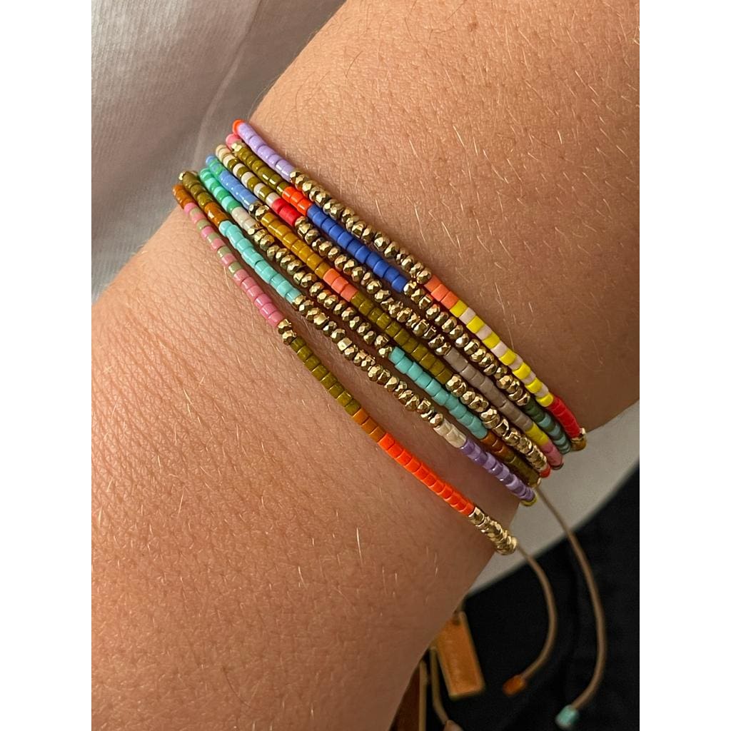 Bracelet sur cordon polyester, composé de barrettes d'hématites dorées et de rocaille miyuki délica. Ces barrettes colorées vous donneront le pep's et apporteront de la couleur à vos tenues.