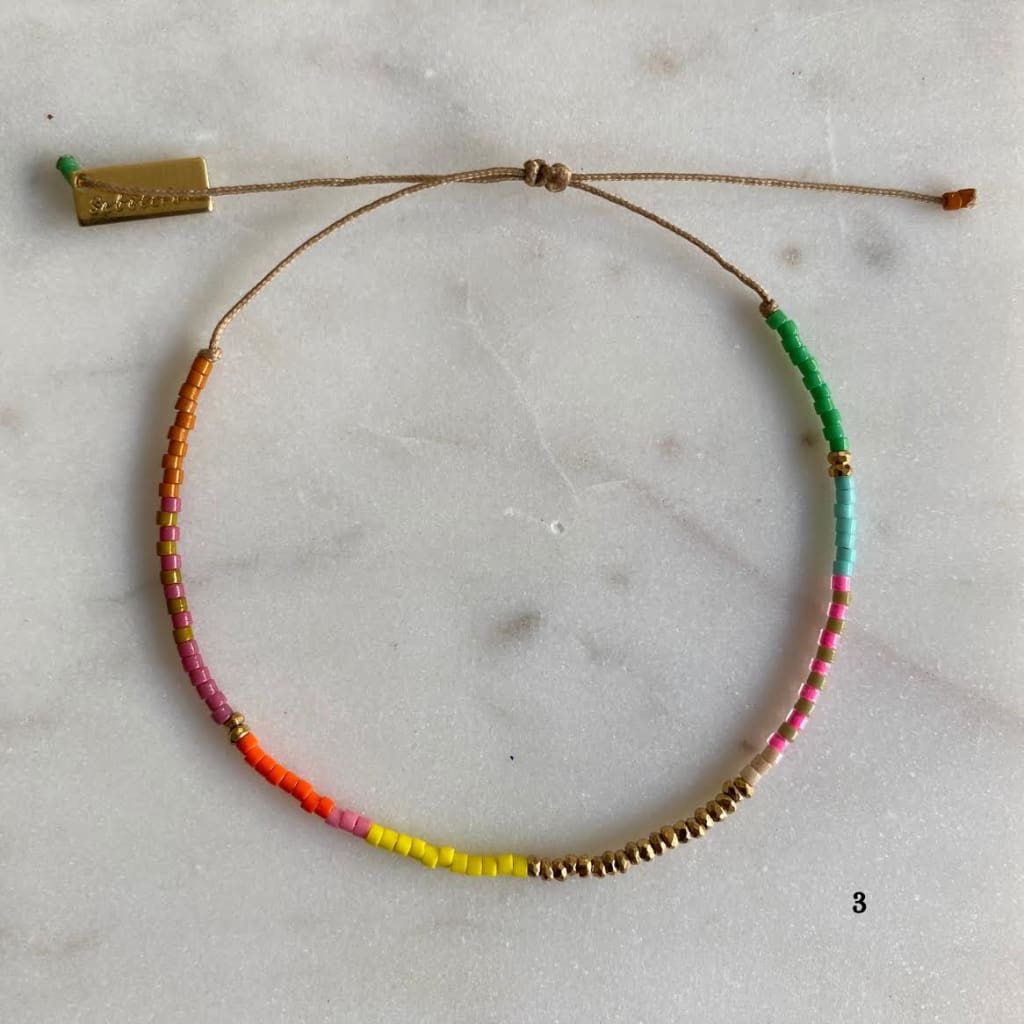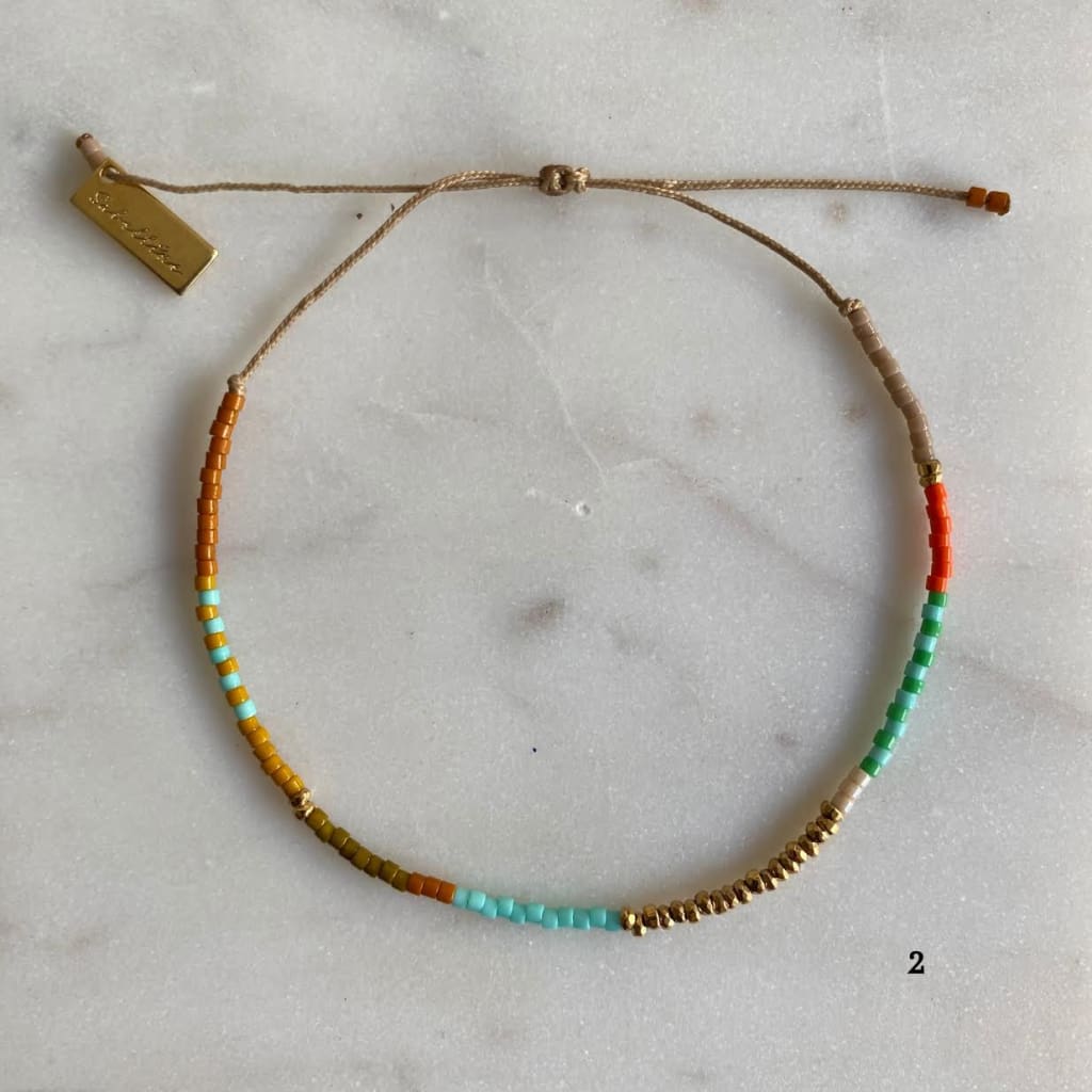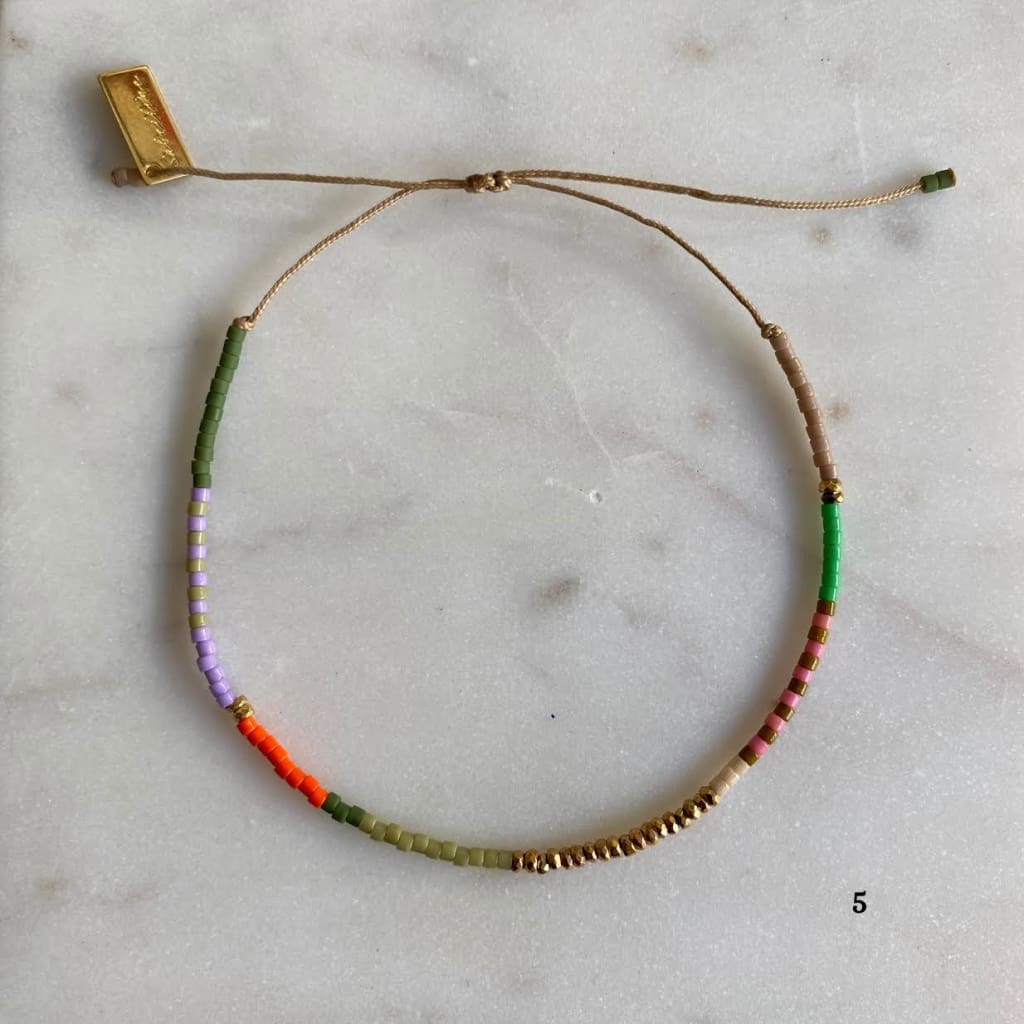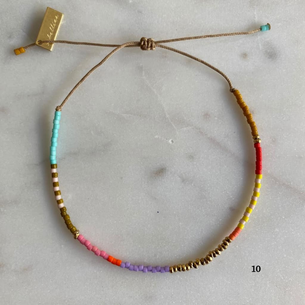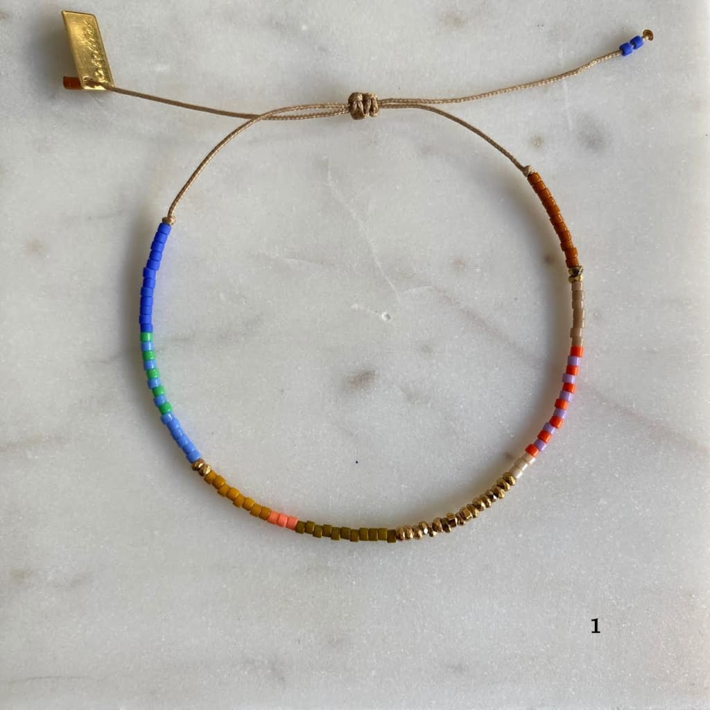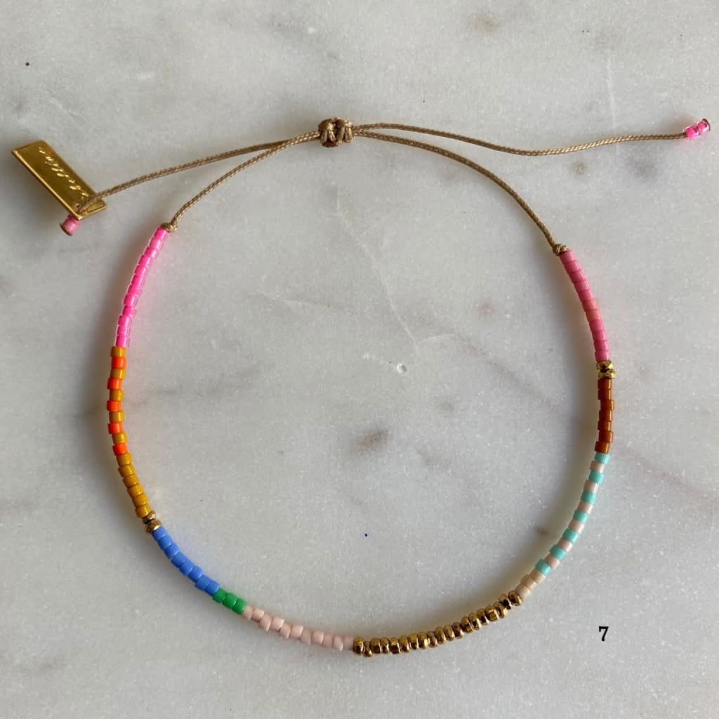 Bracelet sur cordon polyester, composé de barrettes d'hématites dorées et de rocaille miyuki délica. Ces barrettes colorées vous donneront le pep's et apporteront de la couleur à vos tenues.