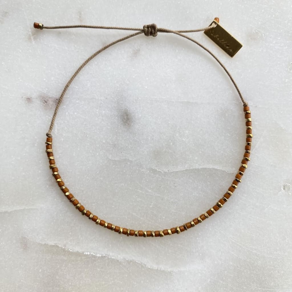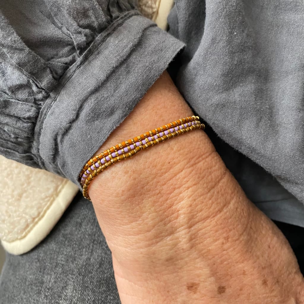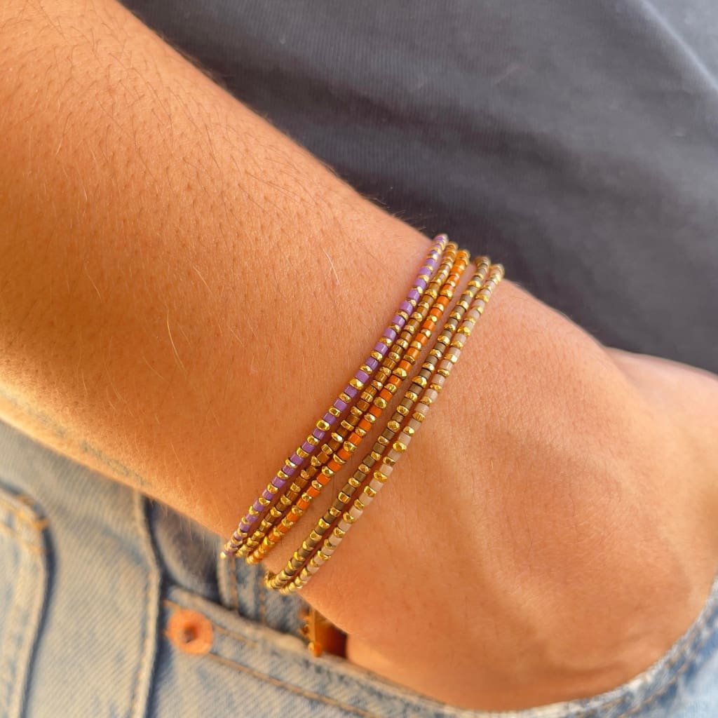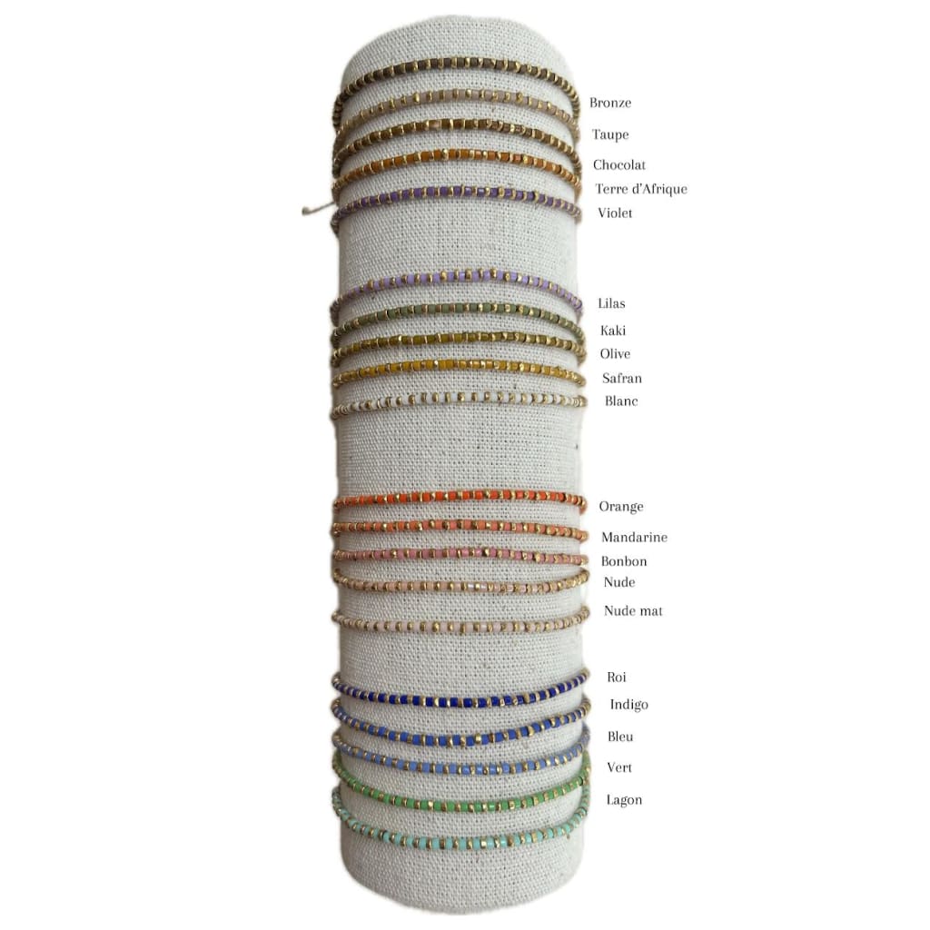Bracelet sur cordon polyester, composé d'un rang d'hématites dorées en alternance avec une rocaille miyuki délica. Vous trouverez en ce bracelet un éclat étincelant avec un large choix de couleurs, qui fera votre bonheur ou la joie de pouvoir l’offrir.
