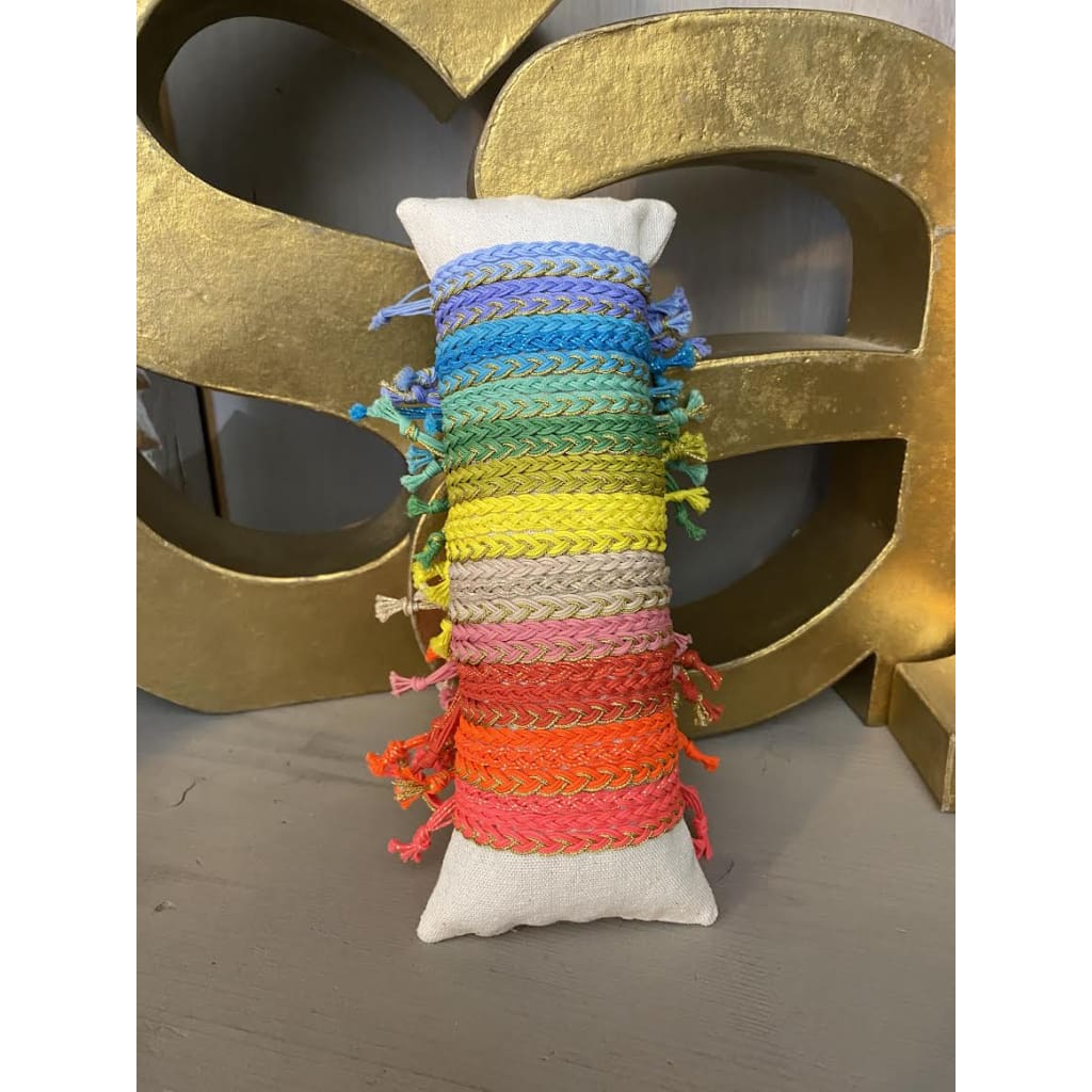 Bracelet tresse réalisée avec des fils en polyester de couleur. Fils utilisés dans la voilure de bateaux, donc très résistants à l'eau.